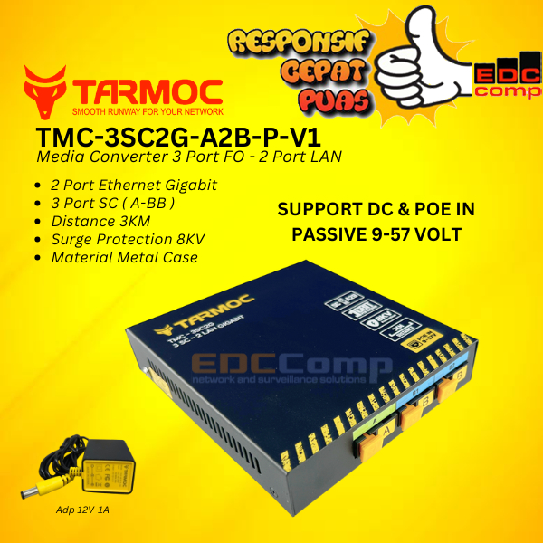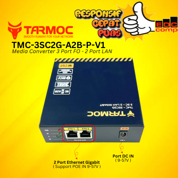 Tarmoc TMC-3SC2G-A2B-P-V1 | Media Converter Switch 3FO 2LAN / 3 FO 2 LAN Gigabit POE IN 9-57 Volt | 3SC 2LAN / 3 SC 2 LAN Gigabit