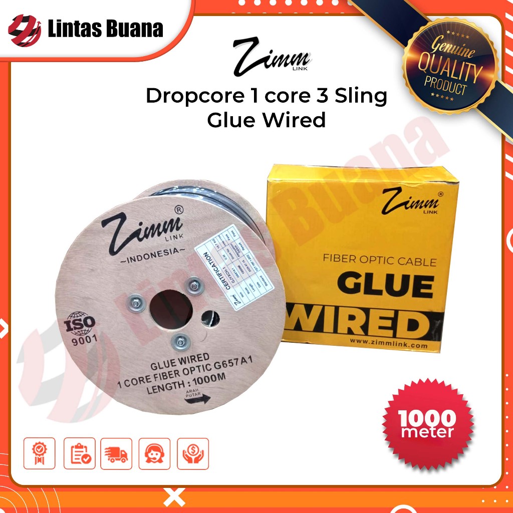 Kabel Dropcore 1 Core 1000 Meter Glue Wired Kabel Fiber Optik 1000m FTTH Zimmlink With GLUE Wired steel wire 1.0mm