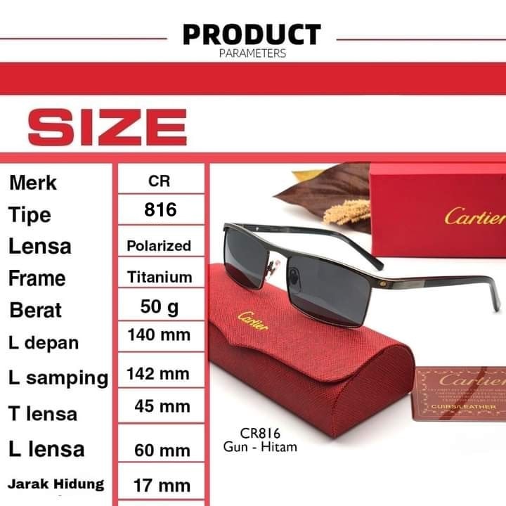 KACAMATA PREMIUM CARTIER LUXXURY CR816 FRAME TITANIUM LENSA POLARIZED PRIA WANITA