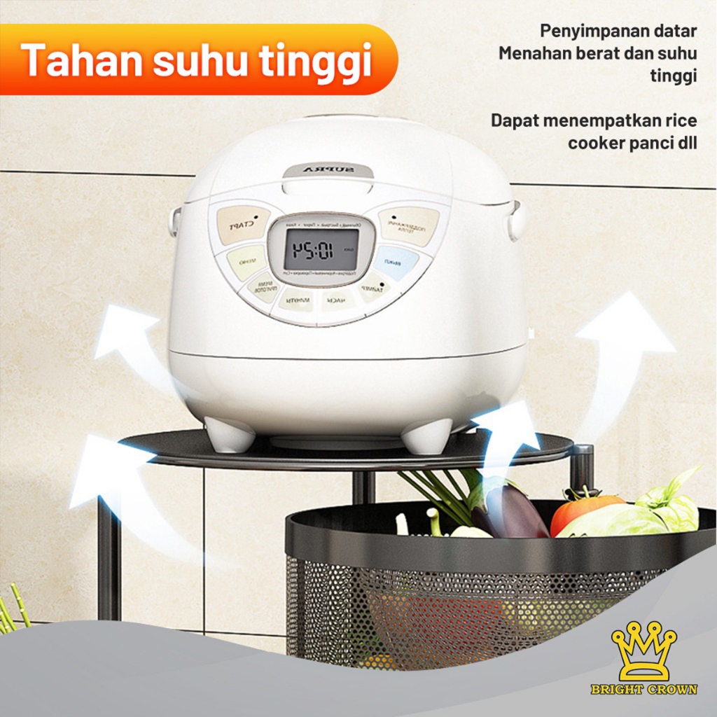 Bright Crown Rak Susun Besi Dapur Serbaguna Tingkat Model Bulat / Rak Troli Susun Putar Bahan Tebal