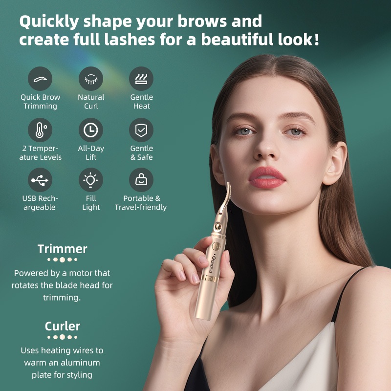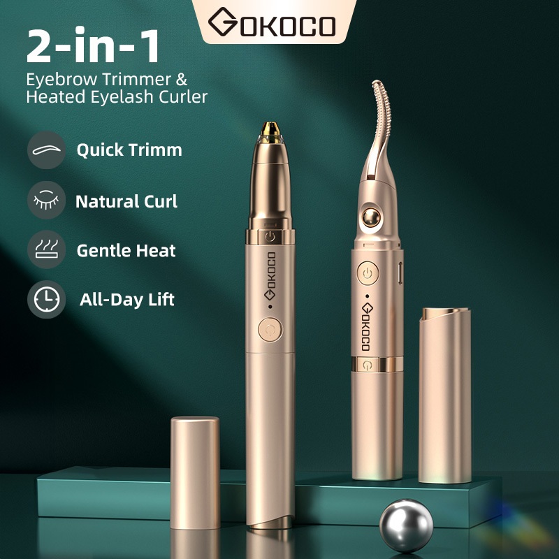 GOKOCO Electric Eyebrow Trimmer Heated Eyelash Curler 2 Temperature Levels 2-in-1 Brow & Lash Styler