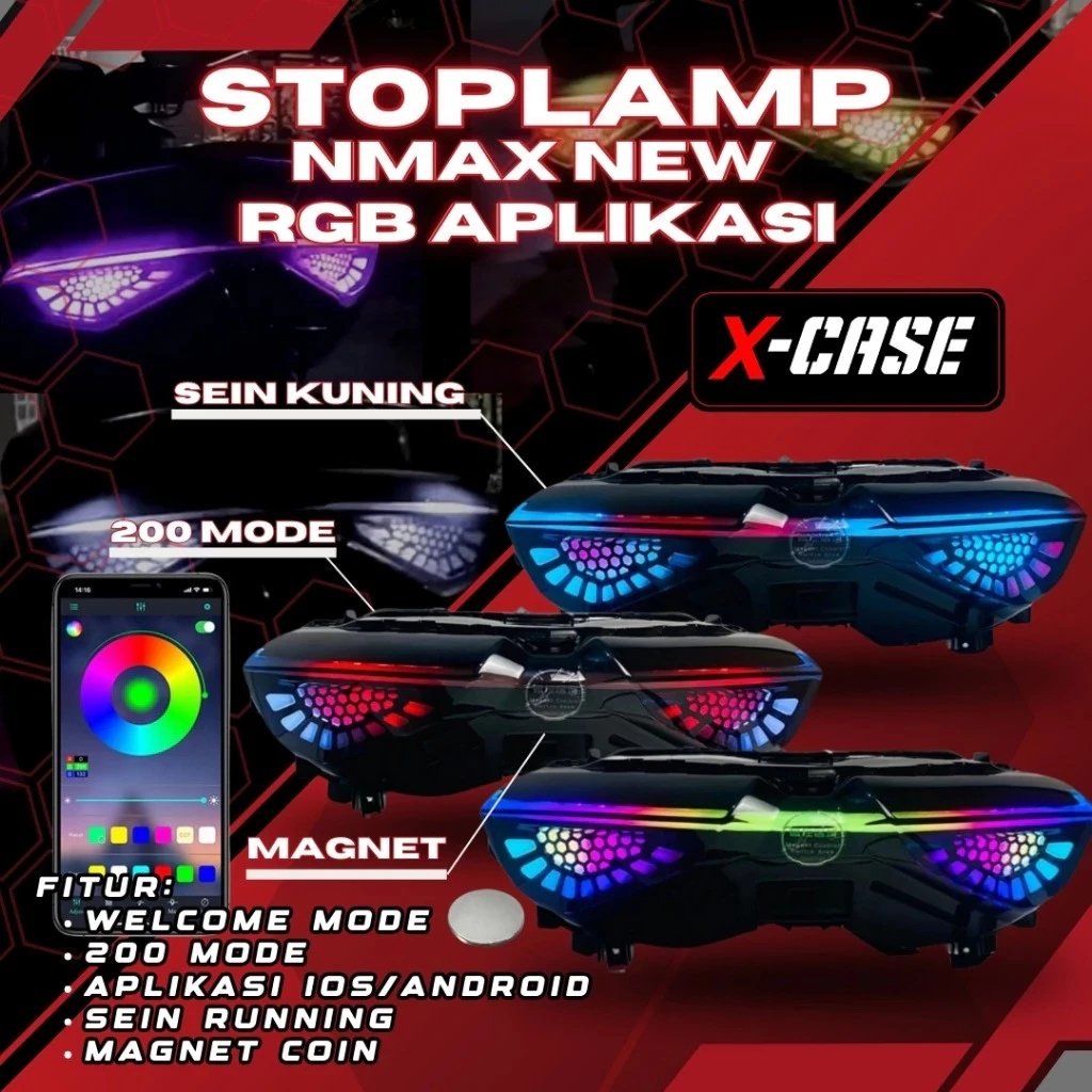 LAMPU STOP NMAX NEW RGB+MAGNET DAN CONNECT APK COLORFULL LED STOPLAMP NMAX NEW 2020-2024 LAMPU REM BELAKANG NMAX BARU 20