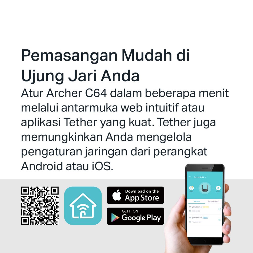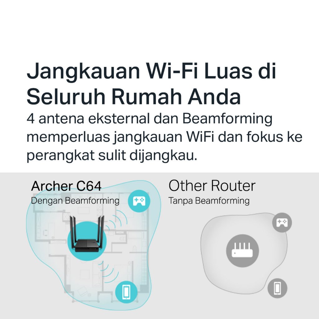 TP-Link Archer C64 | AC1200 WiFi 5 Router | Dual Band | Gigabit | Mesh | IPv6 IPTV | Cloud Tether