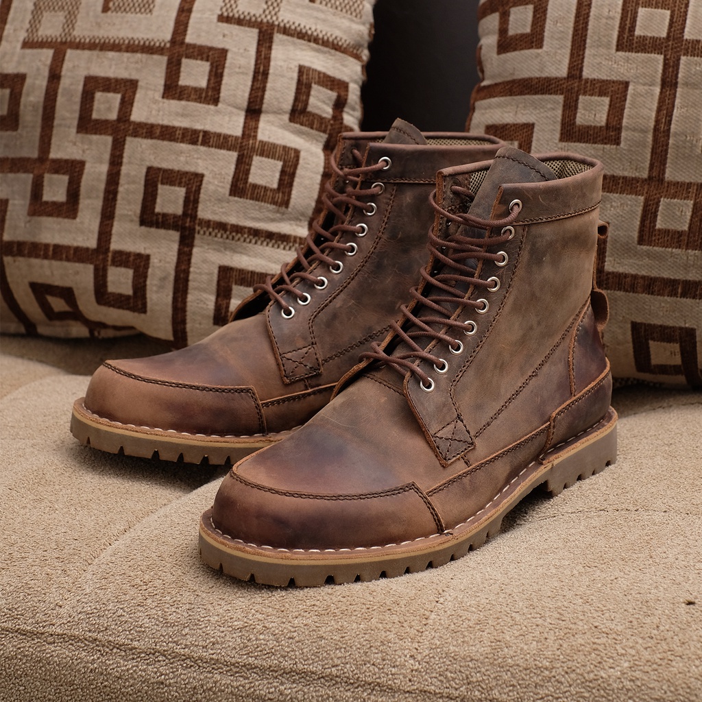 Sepatu Boots Kulit Kratos Aztec Tan - Crazy Horse Pria Rugged Style Bikers Traveling Hiking