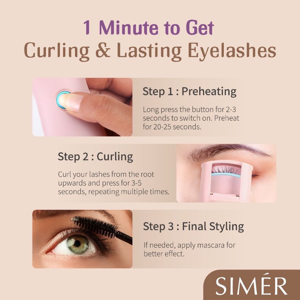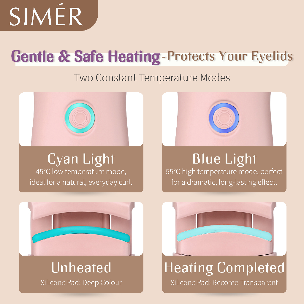 SIMER Intelligent Heated Lash Curler – Fast Heating, Long-Lasting Curl, USB Rechargeable Pengeriting Bulumata Elektrik