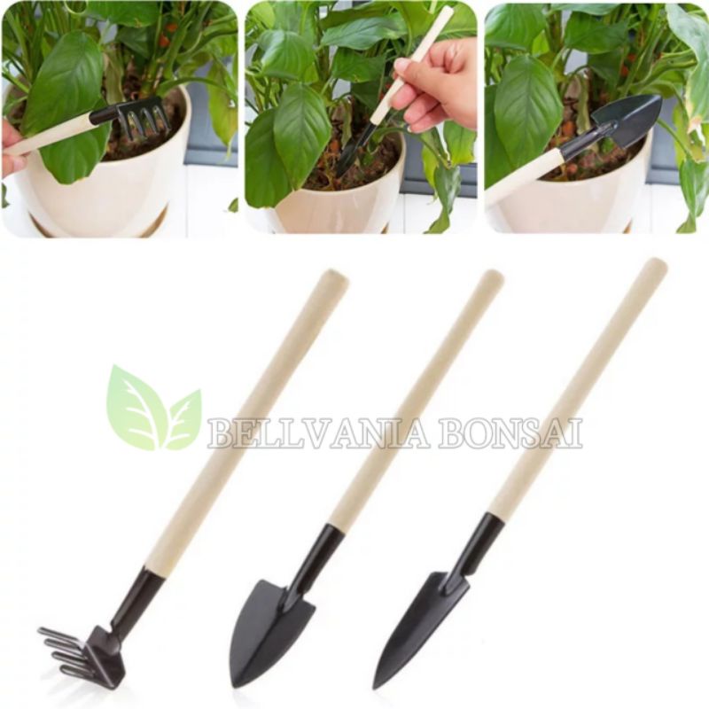 Alat Berkebun Sekop Mini Set Isi 3 Jenis Dengan Gagang Kayu