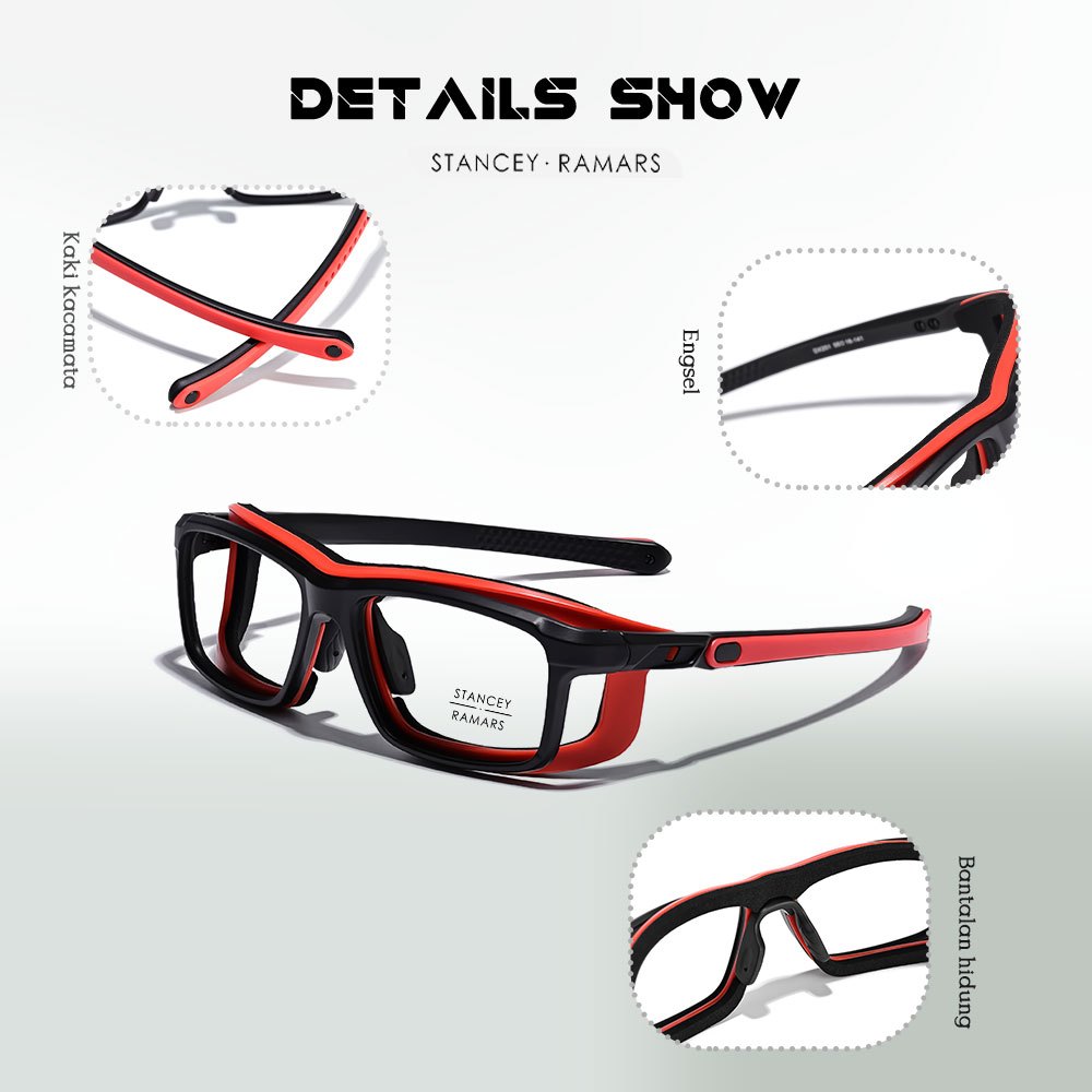 Stancey Ramars Frame Kacamata Sport Trendy Stylish Bentuk Kotak Bahan TR90 Ringan Nyaman Tidak Mudah Patah Style Olahraga Pria Dan Wanita Bisa Minus 201