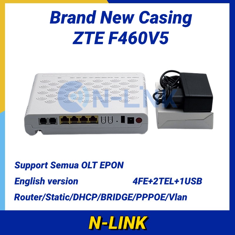 Barang Baru ZTE F460 V5 EPON ONU WiFi Modem | 1GE + 3FE Ports | Hioso HSGQ Compatible | Bridge Mode | Supports All OLT EPON
