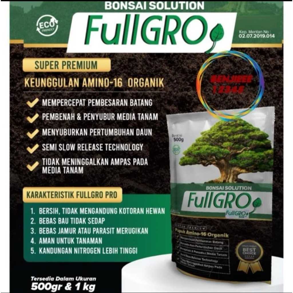 Pupuk Bonsai Organik Fullgro Pro Semi Slow Release Amino 16 Plus 1 KG