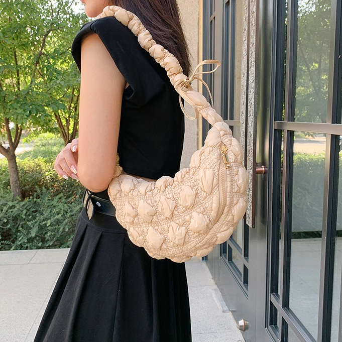 Tas Wanita M Emboss Cozy Bag Puffy Sling Bag Wanita , Tas Selempang / Bahu / Pangsit Korea, Kapasitas Besar & Stylish am