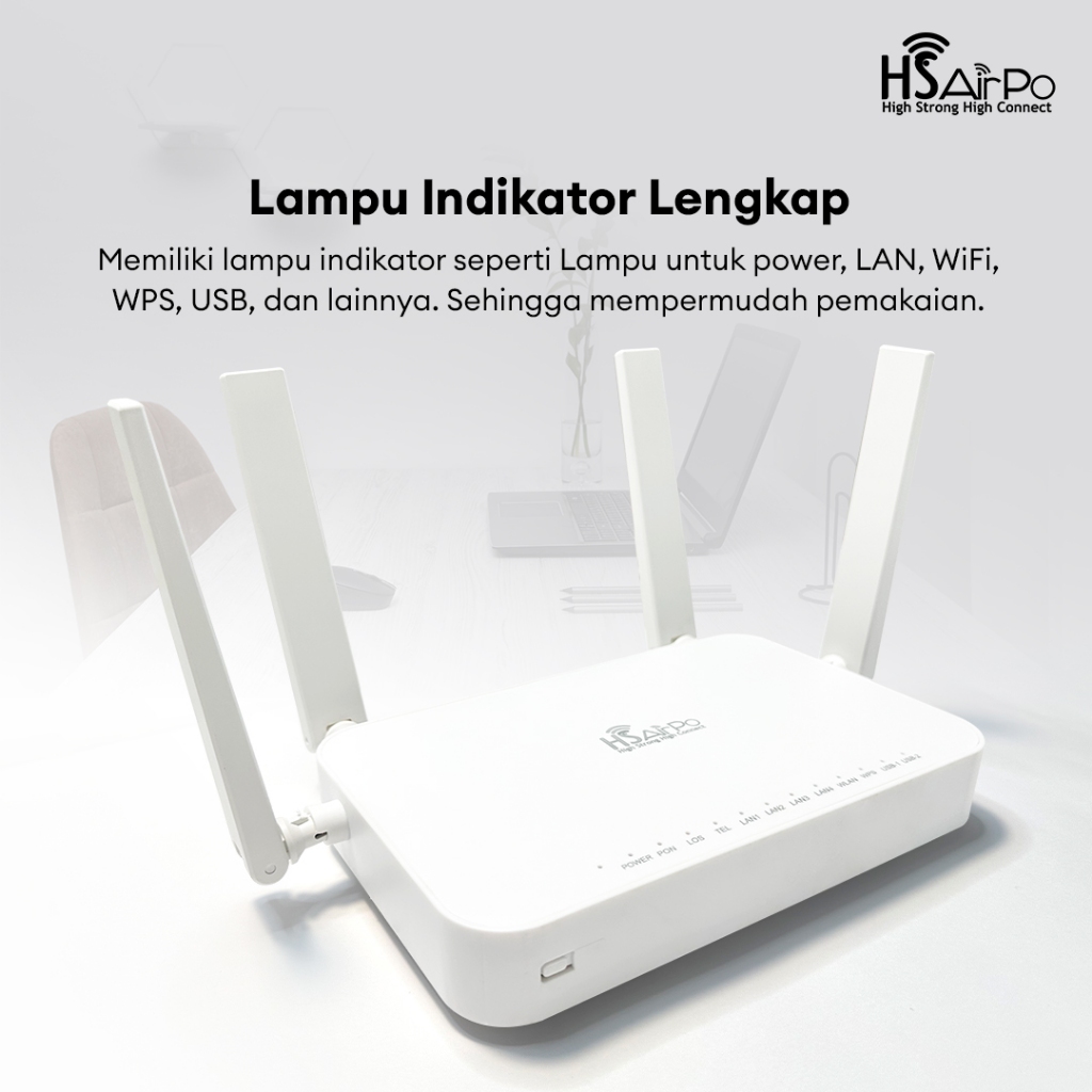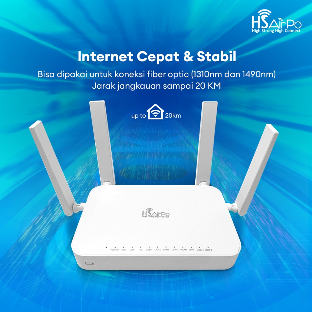 HSAirpo XPON ONU XPW1200A Router Fiber Optik Dual Band Gigabit AC1200 Koneksi Fiber Lebih Stabil dan Cepat