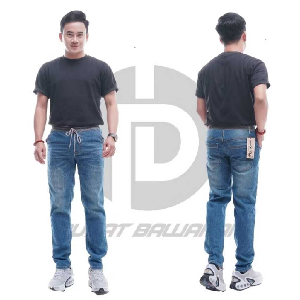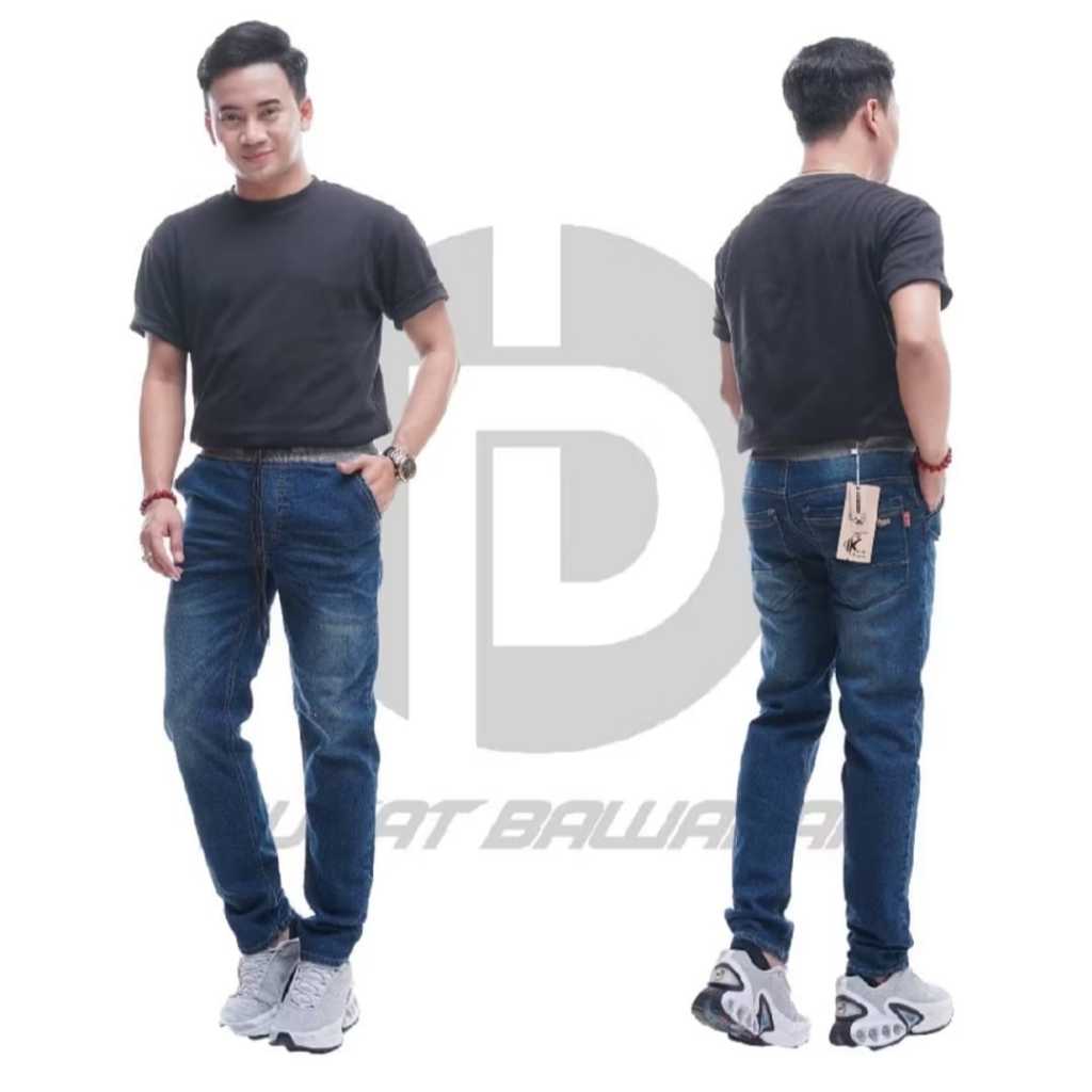 Celana Panjang jeans JUMBO size 27 - 51 pinggang karet Pria Nyaman Retro Distro Hitam Cowok Dewasa Slimfit Stretch Denim Keren nyaman kerja original