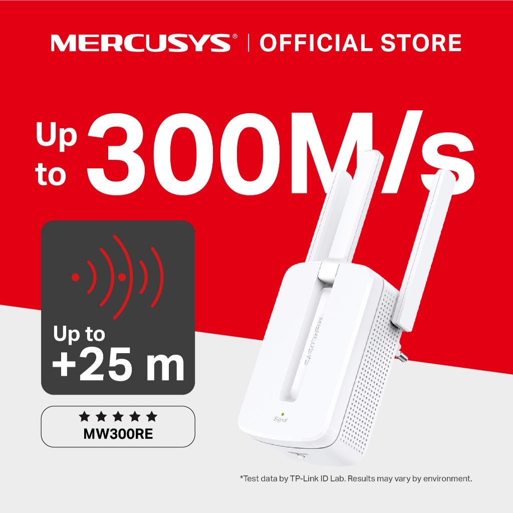 Mercusys | MW300RE | 300Mbps Wi-Fi Repeater | 2.4GHz | 3 Folding Antennas | Wireless Booster | WPA
