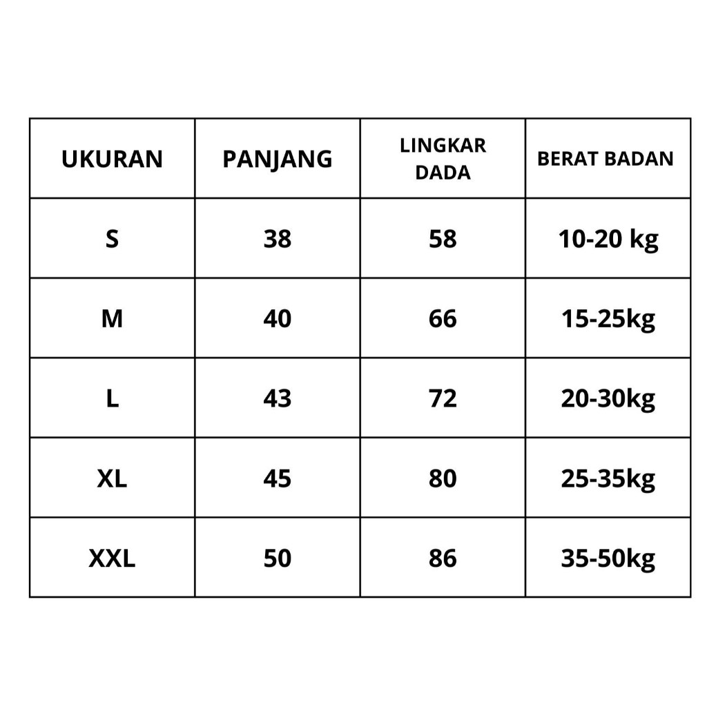 S (2-3), M (4-5), L (6-7), XL (8-9), XXL (10-11)