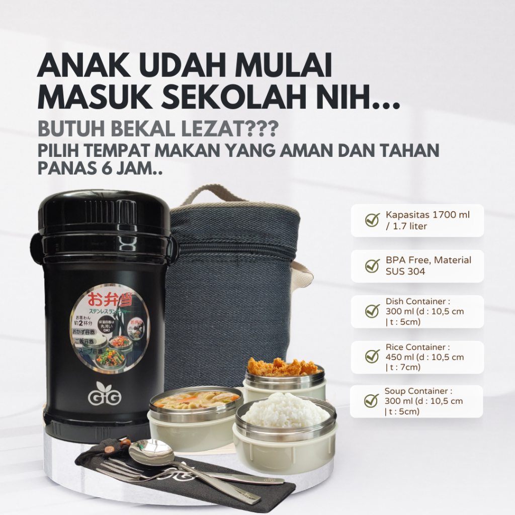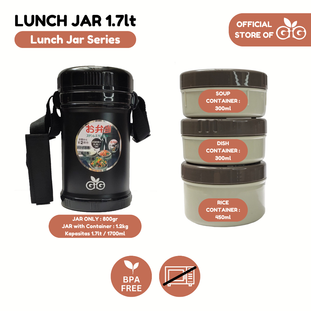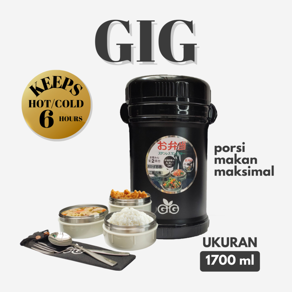 GIG Premium Lunch Jar 1.7L – Termos Makanan Anak/Dewasa Tahan Panas | Kotak Bekal Stainless Steel