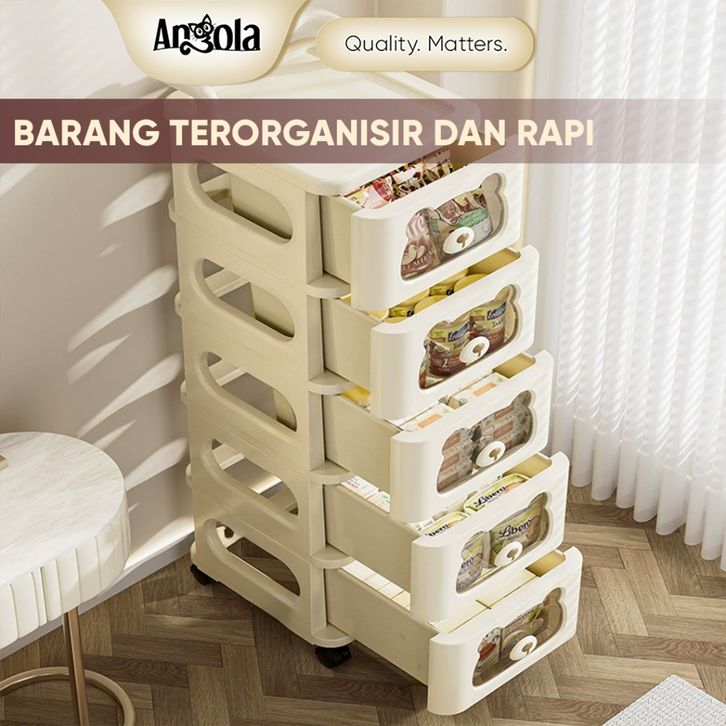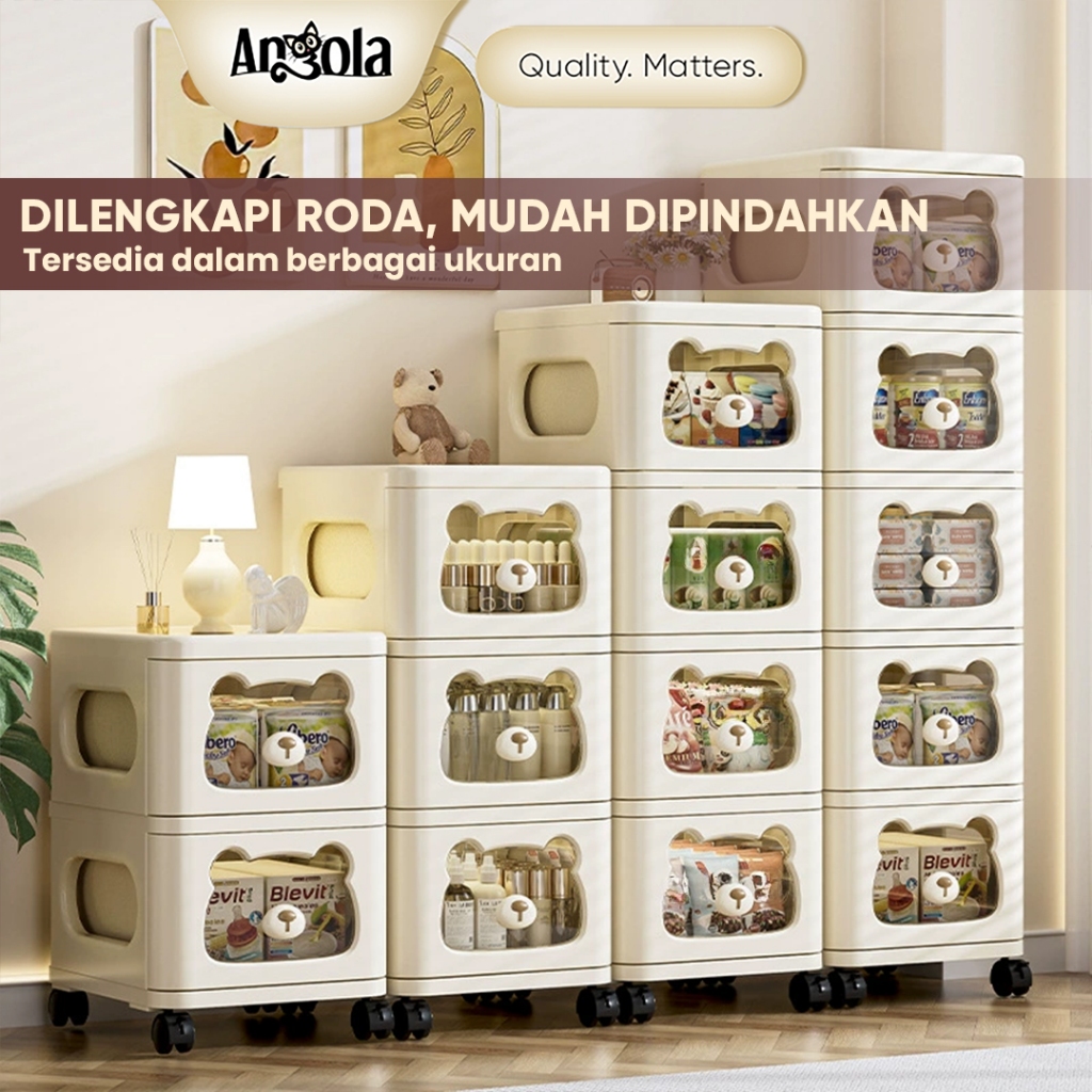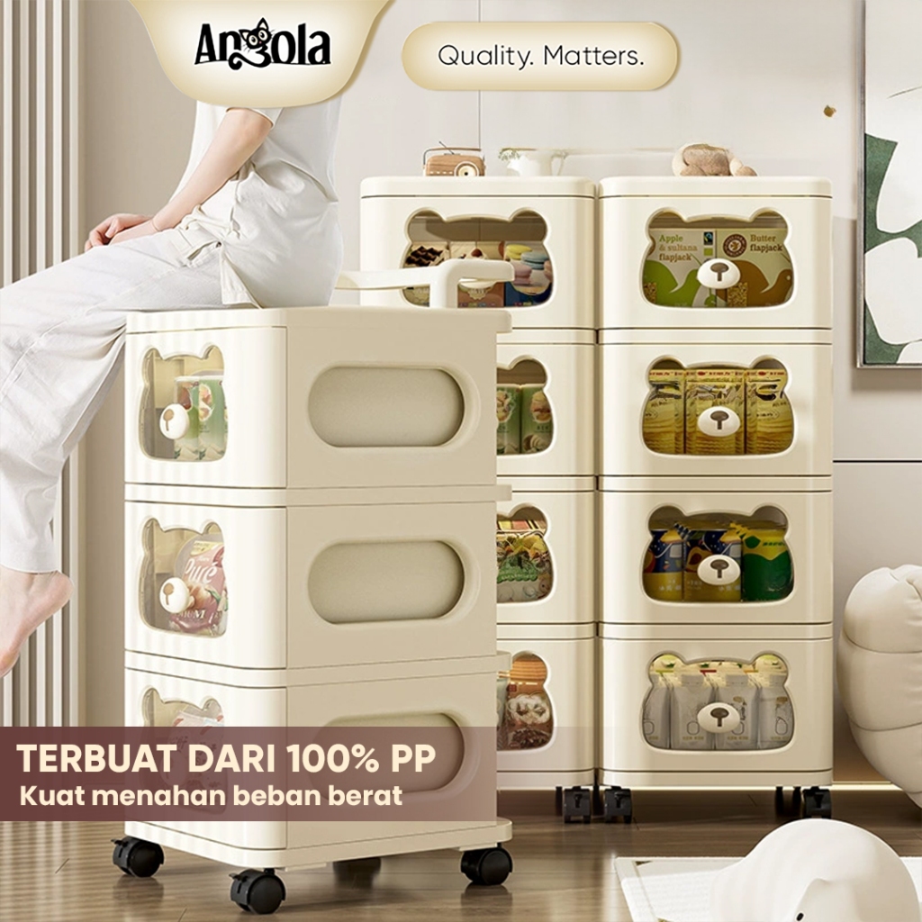 ANGOLA Rak Laci Dorong Ekstra Besar Teddy Bear C59-C63 Rak Troli Serbaguna/Lemari Pakaian Multifungsi