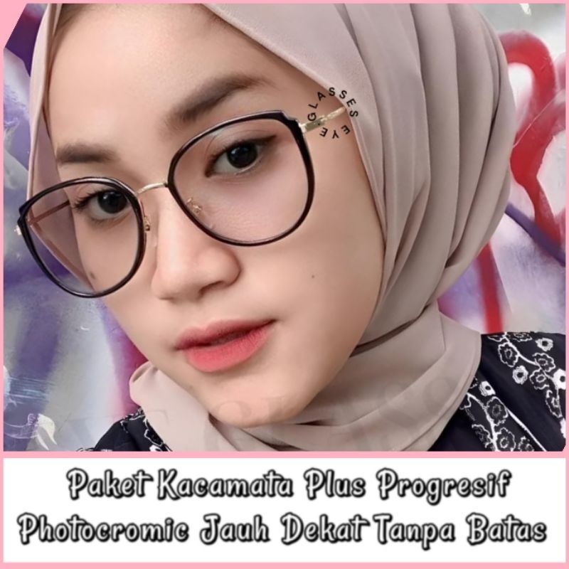 Paket kacamata Plus Progresif photocromic 32004 / Kacamata Baca dan jalan lensa Progresif double fokus jauh dekat tanpa batas