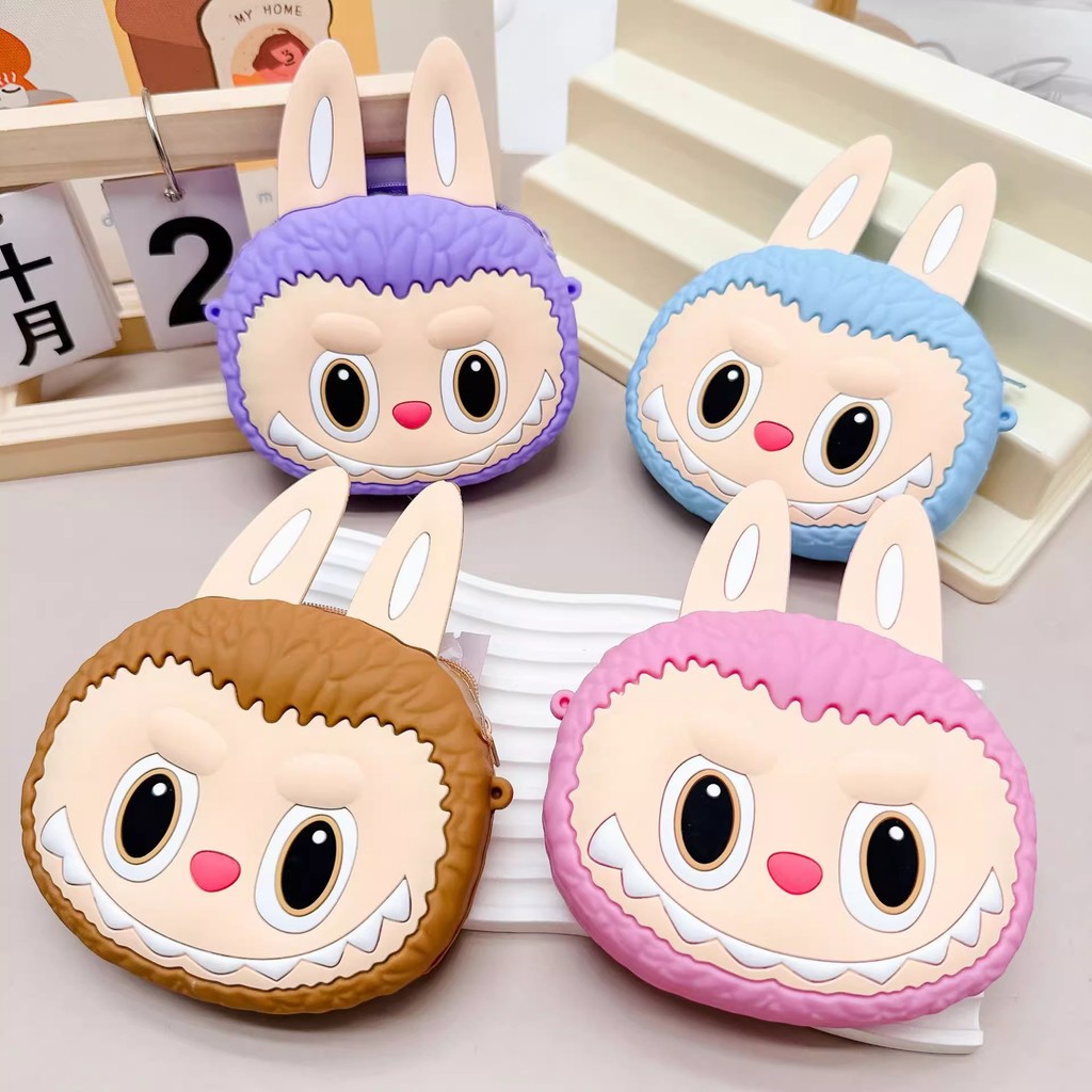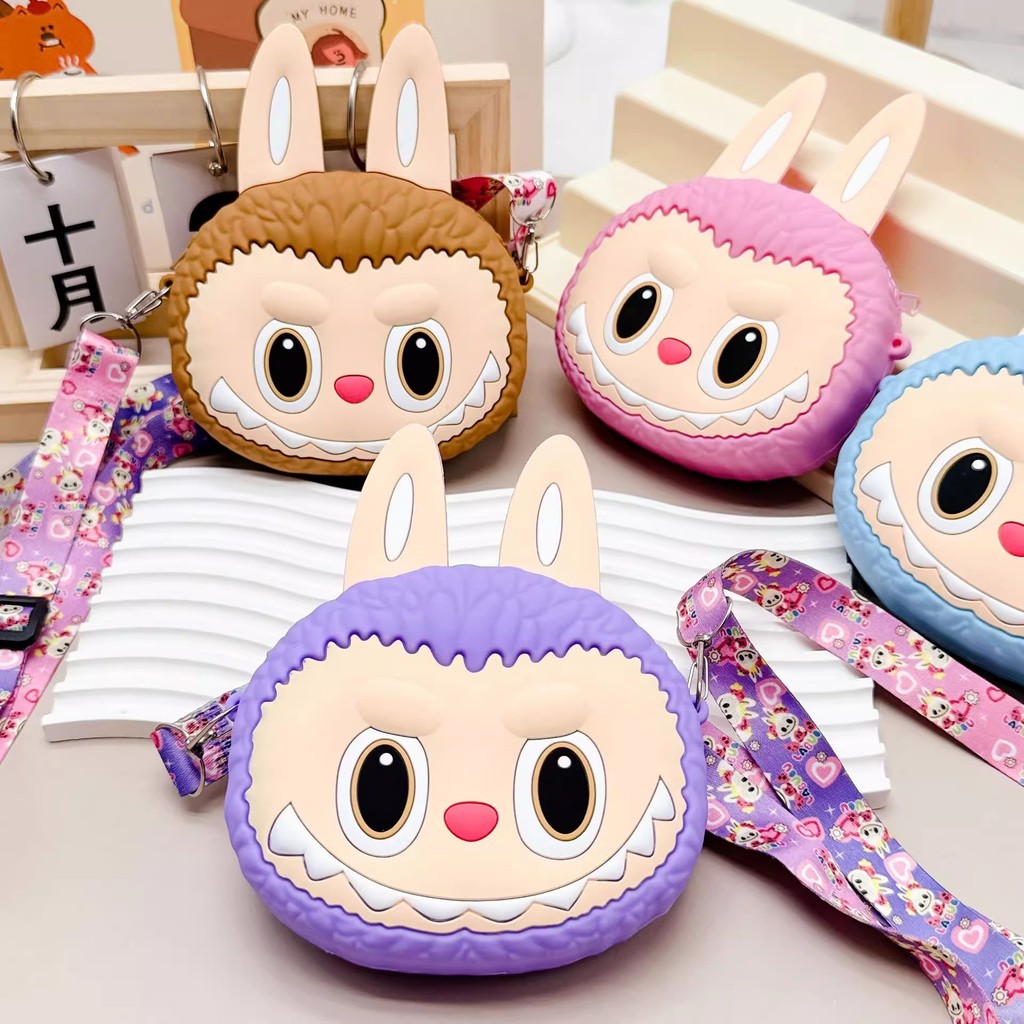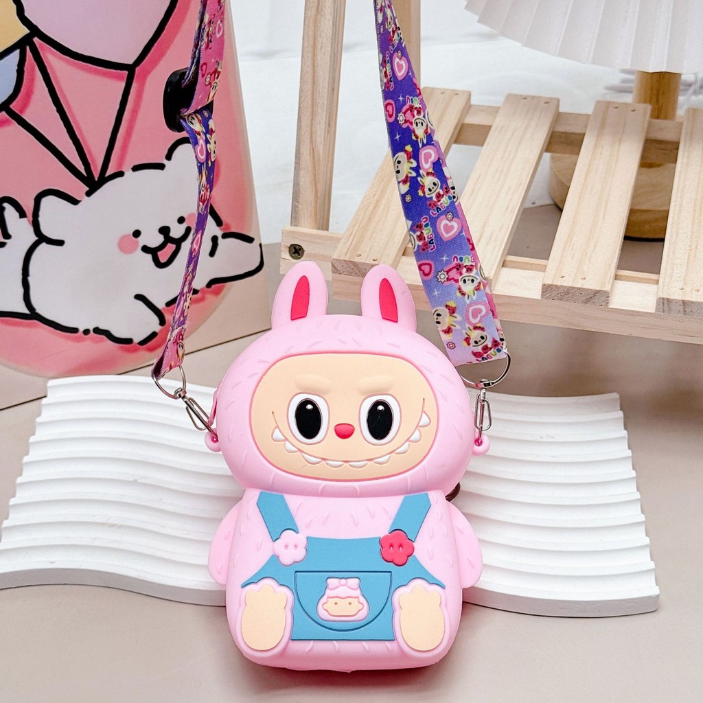 []LABUBU Tas Motif 3D Rubber Sebaguna dan Tahan Air Tas Selempang Boneka LABUBU Kartun Anak Silicon Resleting Sling Bag