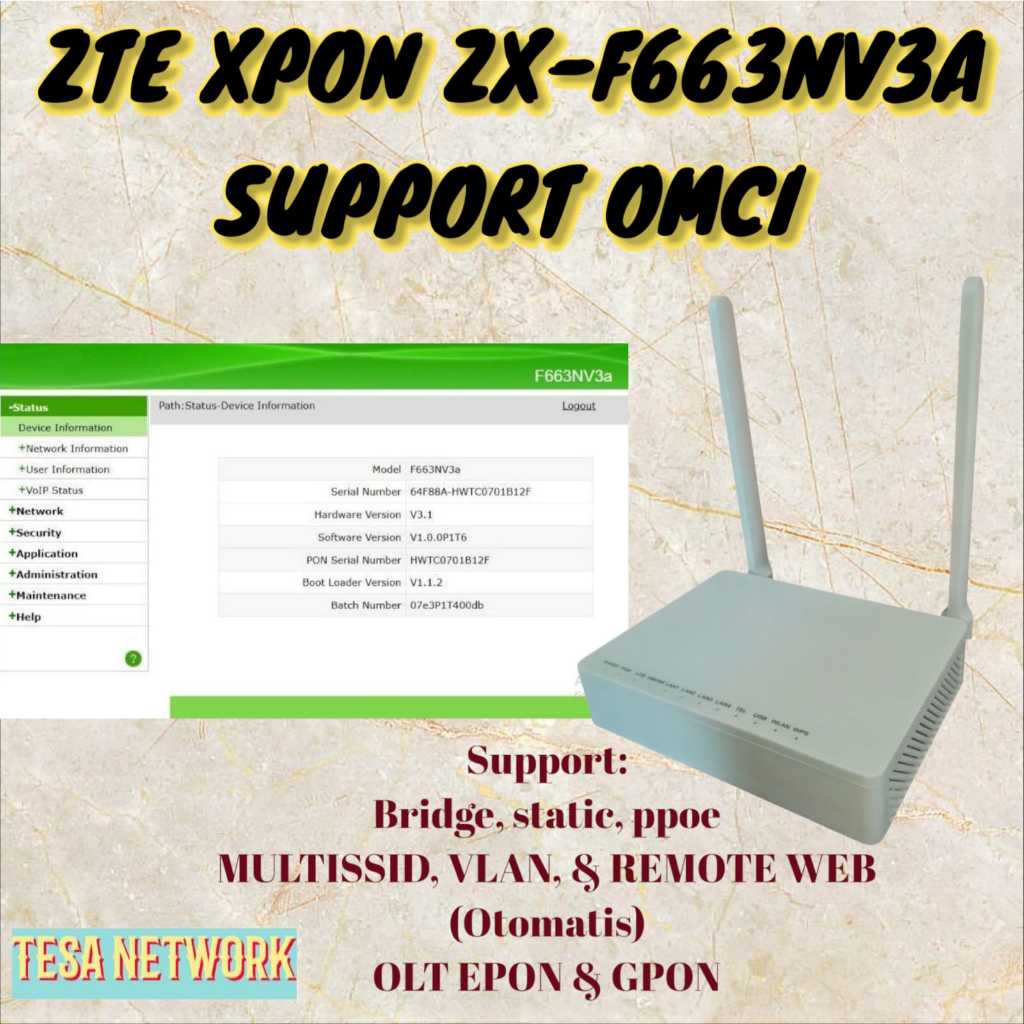 ZTE XPON EPON GPON ZX-F663NV3A SUPPORT OMCI