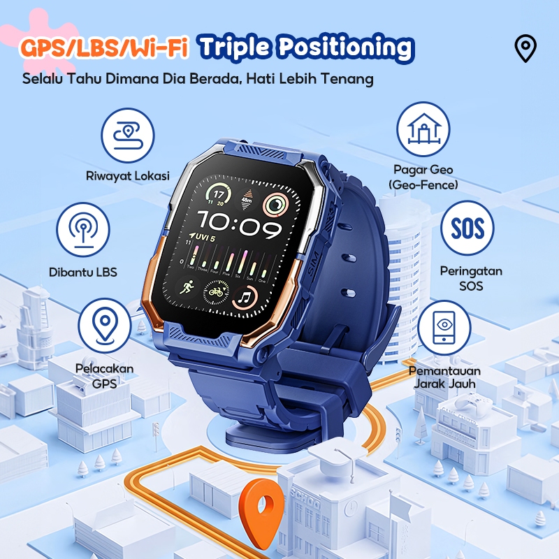 Kiumo smartwatch anak IP67 anti air with HD camera video call jam tangan GPS kids smartwatch SIM Card 4G
