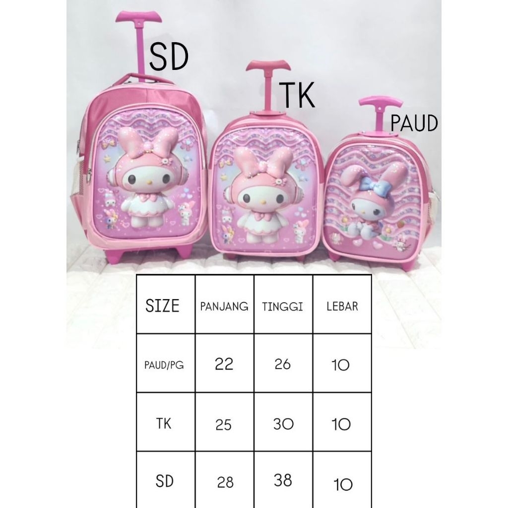TAS TROLLEY Anak PEREMPUAN TK SD 3D Timbul LED Gambar Karakter MELODY CINAMON