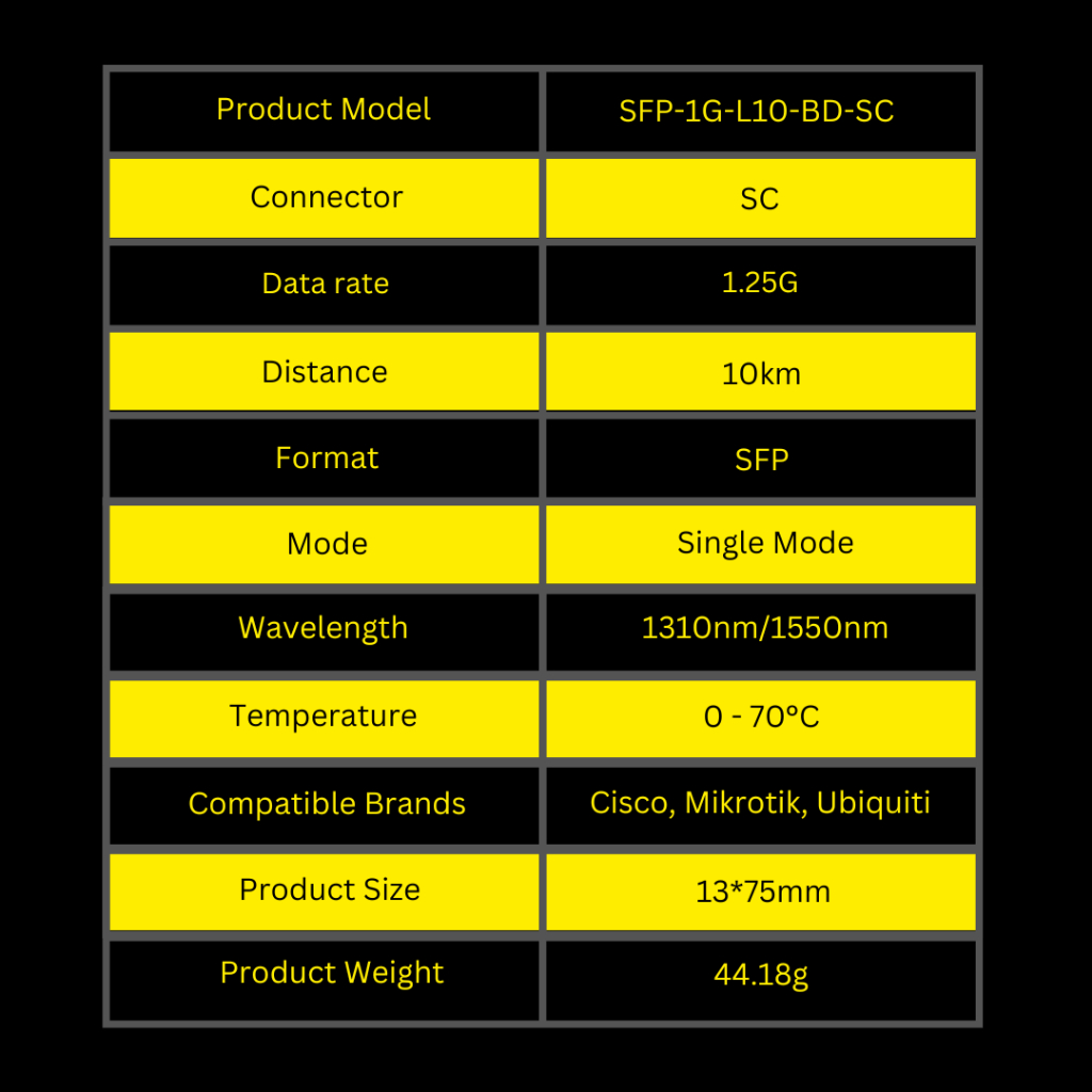 Tarmoc SFP-1G-L10-BD-SC | SFP 1G BIDI 10KM SC | SFP 1G 10KM Single Mode