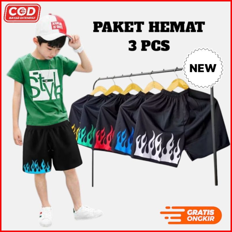 Top Murah Paket Hemat 3 Pcs Celana Pendek Anak Motif Api Pria Wanita Usia 7-14 Tahun
