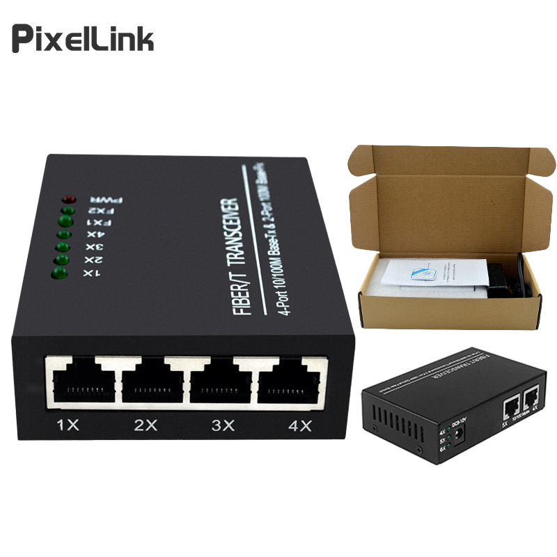 PixEILink【Support POE】100Mbps 2F4E Converter 4 RJ45 2 SC Ethernet Fiber Converter