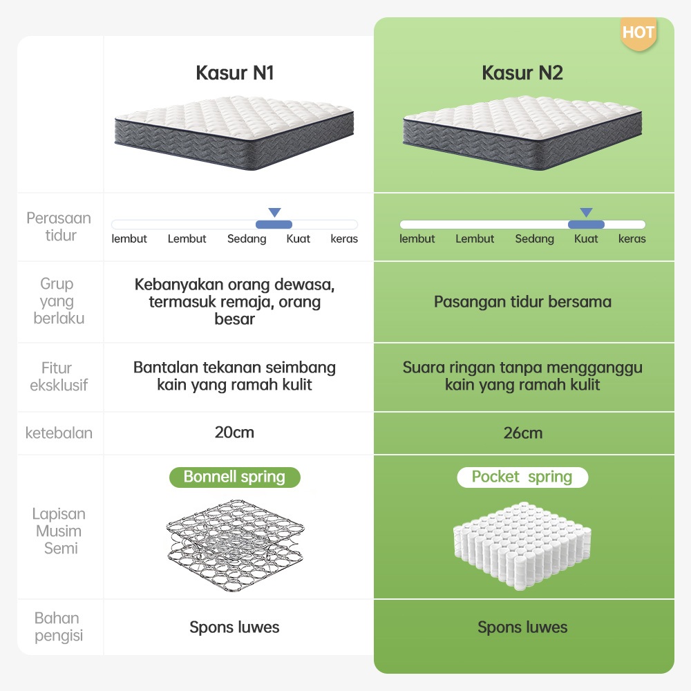 【Gratis Bantal】kasur busa kasur springbed 90/180CM tebal 20/26CM spring bed single pocket spring tanpa suara