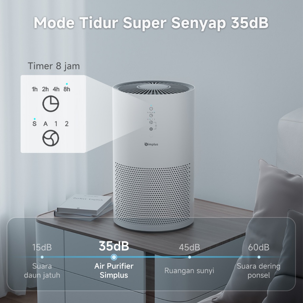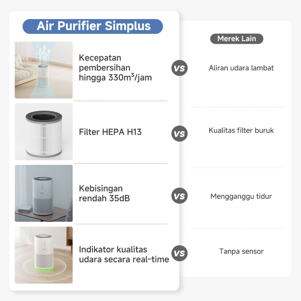 Simplus Air Purifier Penyaringan HEPA H13 Efisien Tingkat Pemurnian Super Senyap 35dB Mode Pintar Otomatis Murah