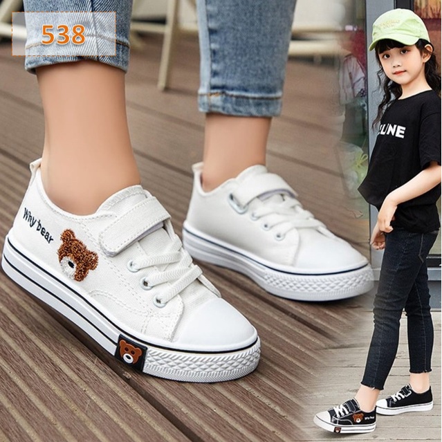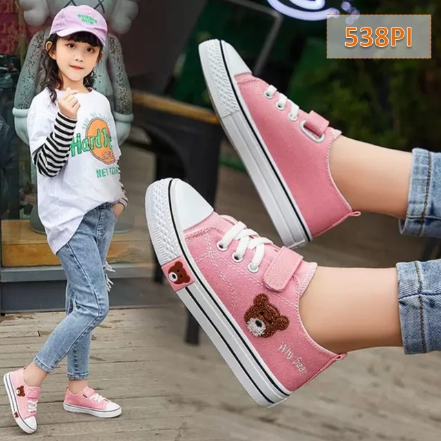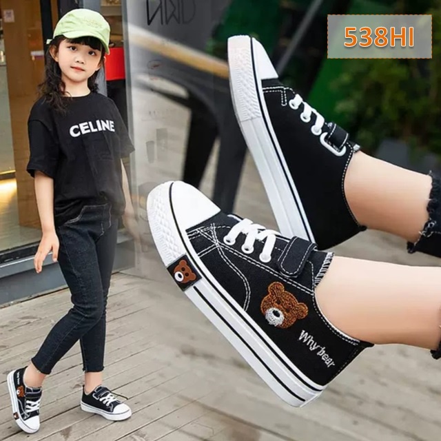 Jejak Sepatu Sneakers Anak Kanvas Bordir Why Bear Velcro Tali Kasual Unisex Ukuran 26-35 (AS175)