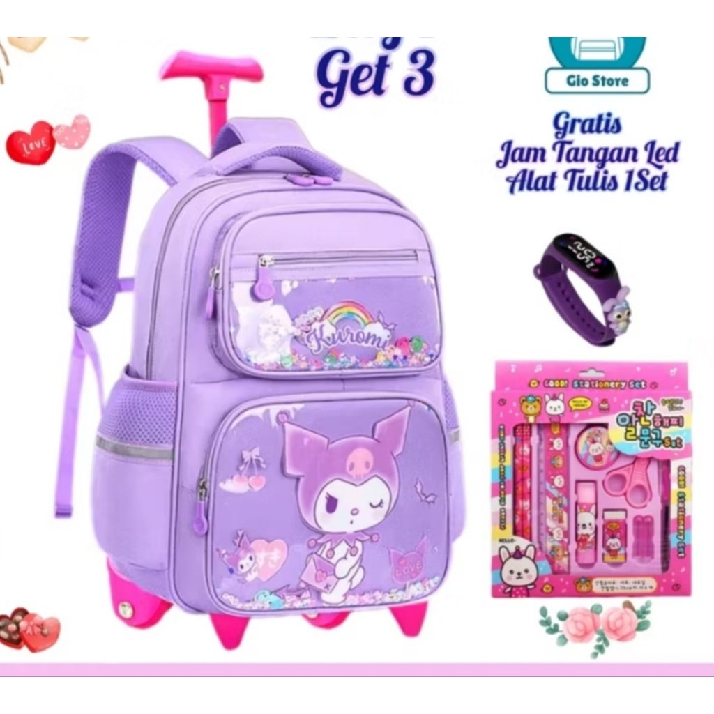 Tas Ransel Troli Anak Perempuan Terbaru Untuk Sekolah Sd Smp Tas Anak Lucu Motif 3 Kartun Lucu kuromi melodi cinamorol
