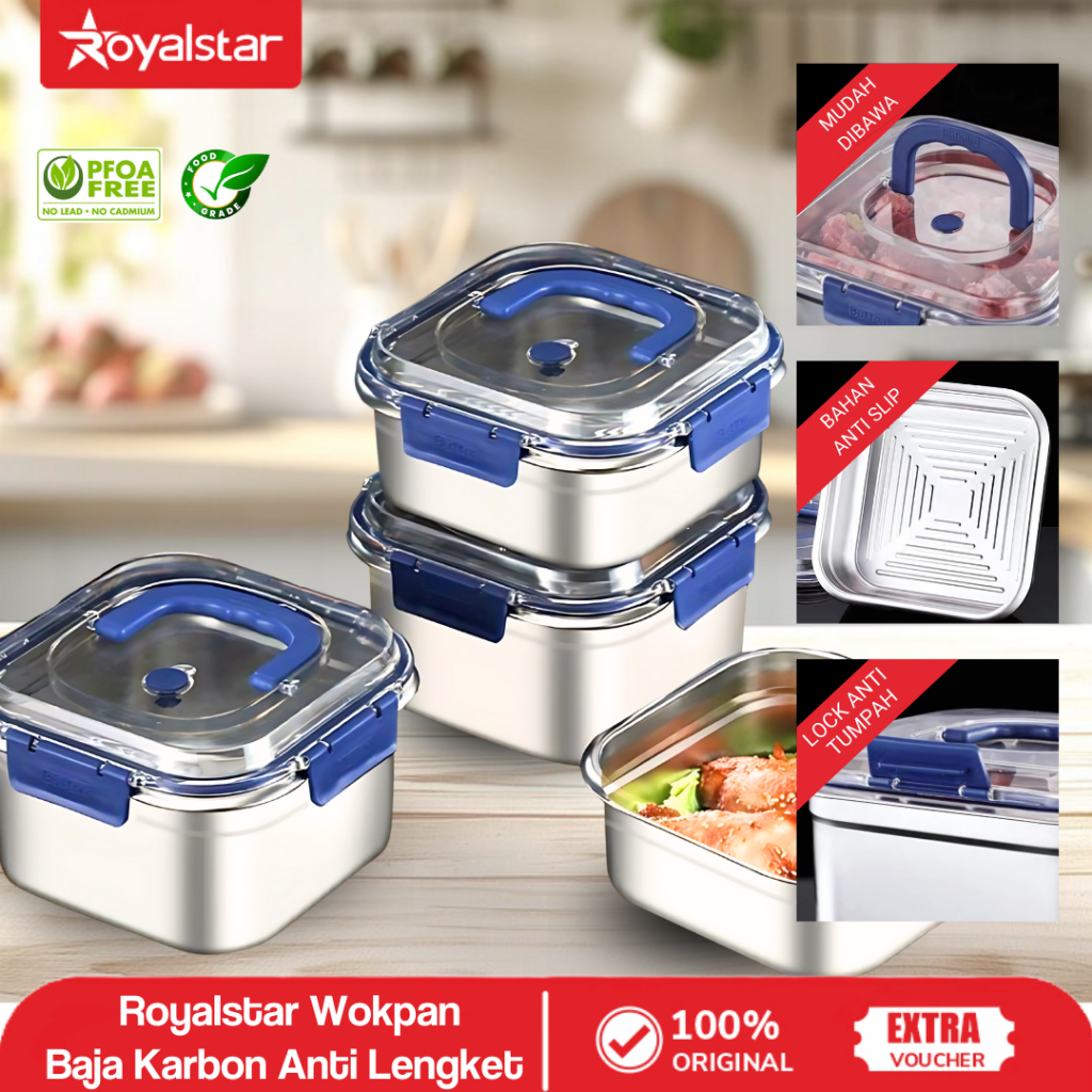 Royalstar Lunch Box Kotak Makan Stainless Steel Foodgrade Penutup Klip Anti Tumpah & Tahan Panas