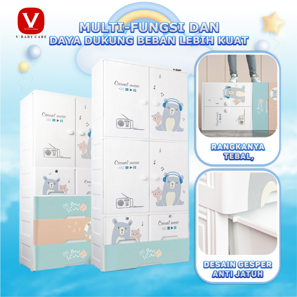 V-BABY CARE - Lemari Pakaian Anak 65CM / Lemari bayi Plastik / Plastic Storage Cabinet Lemari T6
