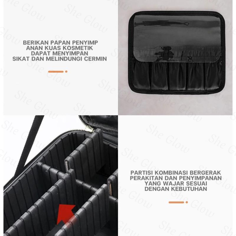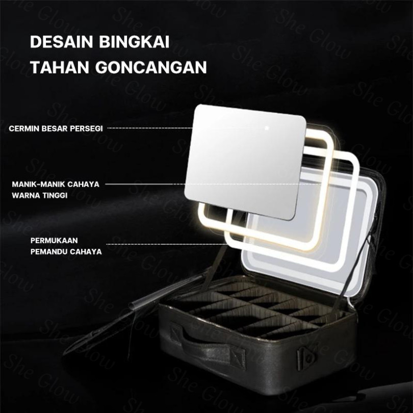She Glow (GARANSI 1 TAHUN) Tas Makeup Lampu / LED Makeupartist Bag MUA S / L Full Mirror Beauty Case SG