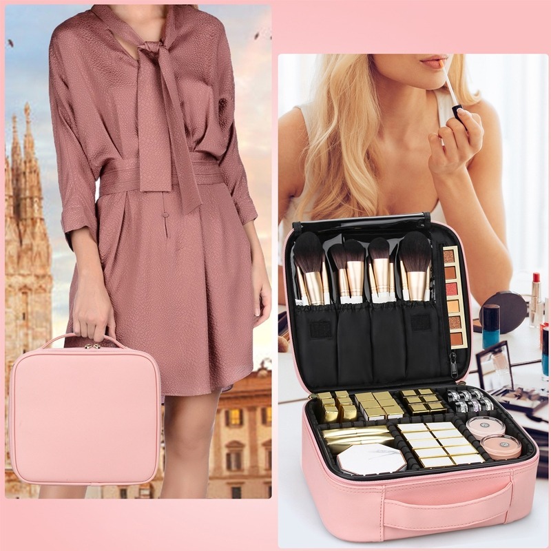 Mewah Makeup Bag Tas PU Traveling 3 Ukuran Kompartemen Merah Muda Genggam TasKompartemen Portable Beauty Case Tas Organi