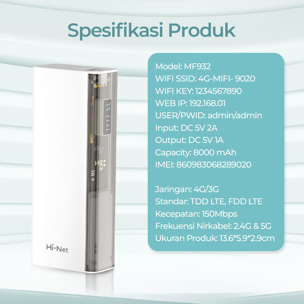 Hi Net MF932 Power Bank Router WIFI Portabel 150Mbps 8000 mAh Mendukung semua operator