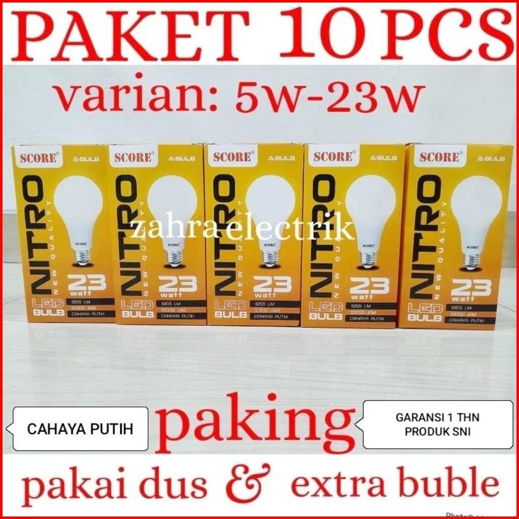 Bohlam Led Lampu Led Garansi 1 Tahun Score Nitro 5w-23w Paket 10pcs
