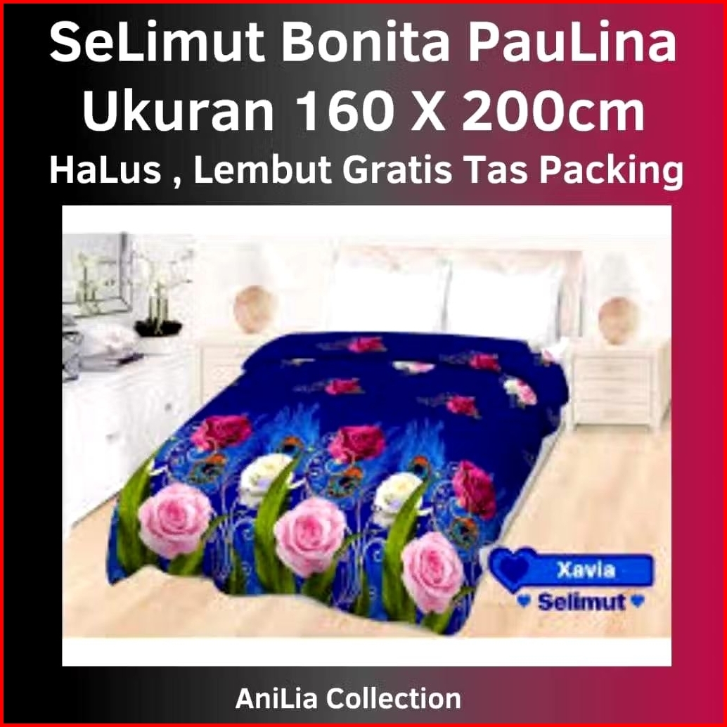 Selimut Bonita Paulina 160x200 Bahan Lembut Adem Free Tas Packing Praktis