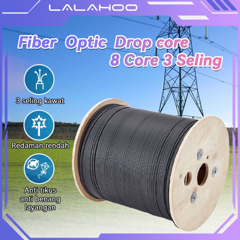 Kabel FO Dropcore 8 core 3 Seling/12 core 3 Seling 1000m Kabel Fiber Optic FTTH Drop Wire