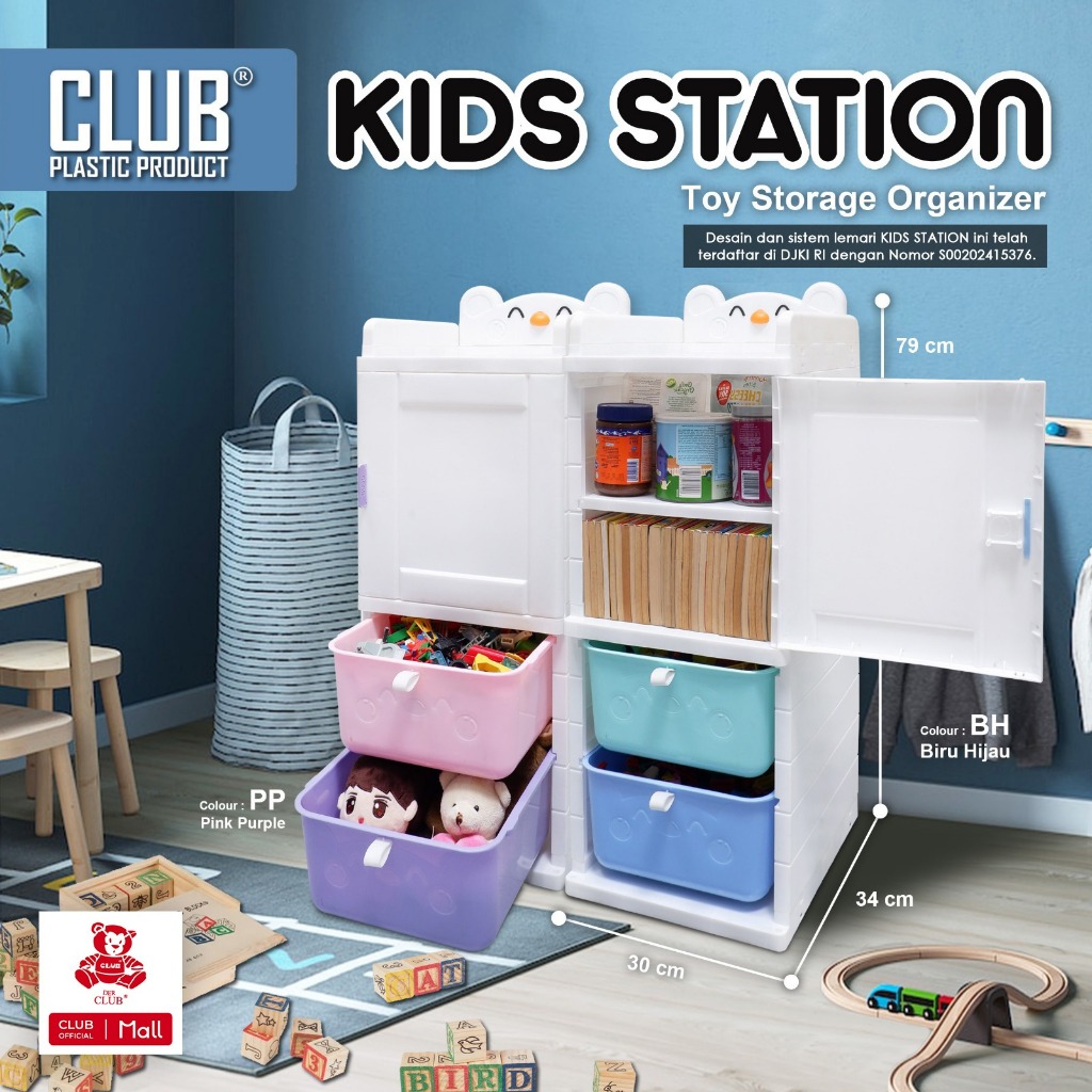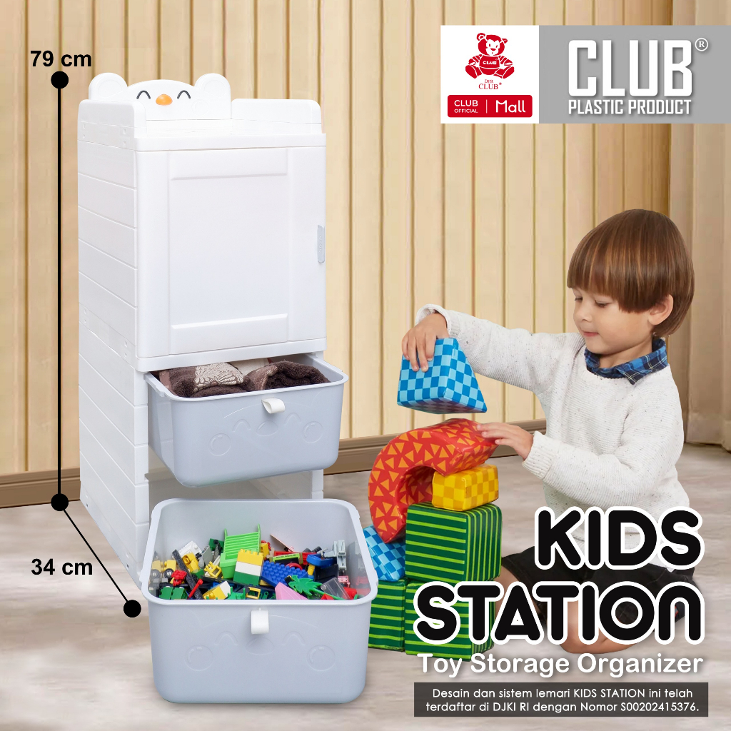 CLUB Kids Station - Tempat Penyimpanan Buku Laci Mainan - Box Laci - Rak Serbaguna Aesthetic