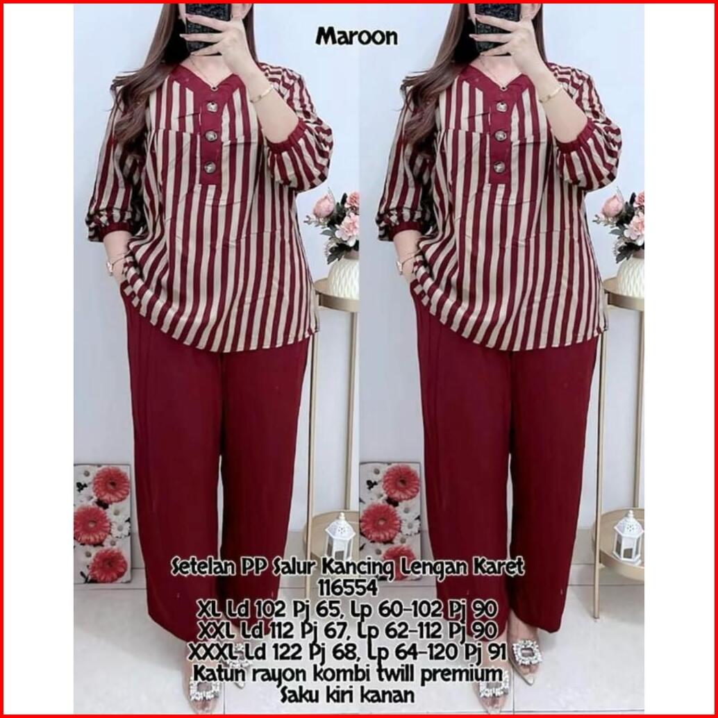 Setelan Pp Salur Kancing Lengan Karet Terbaru 2025 Bahan Rayaon Premium Bahan Adem