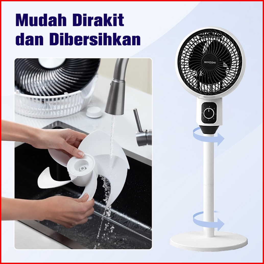 Kipas Angin Berdiri Rotation Fan Minimalis Stand Fan 180 Derajat 9 Inch Jangkauan Jauh Stand Fan Low Noise