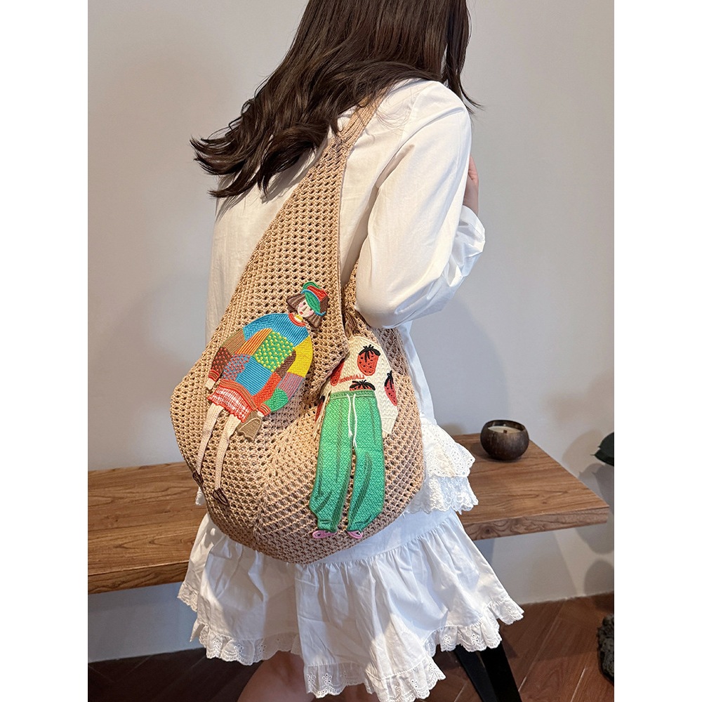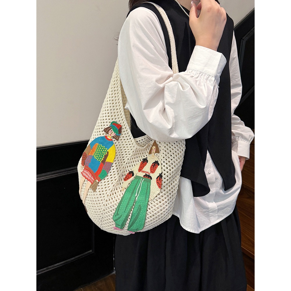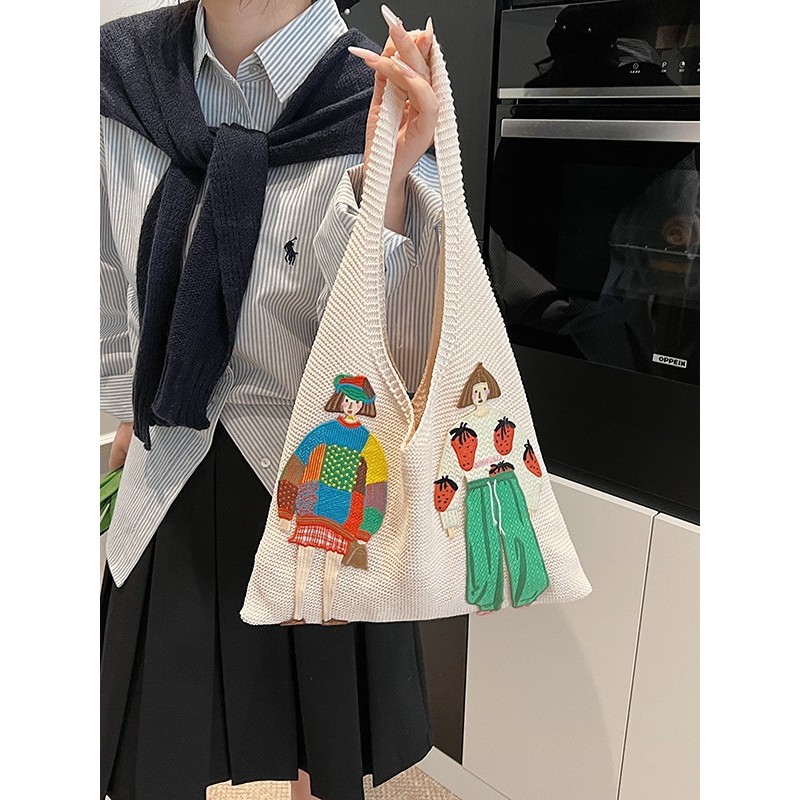 LOOYOYU Tas Rajut Handmade Motif Bohemian Girl - Tote Bag Knitted Style Korea