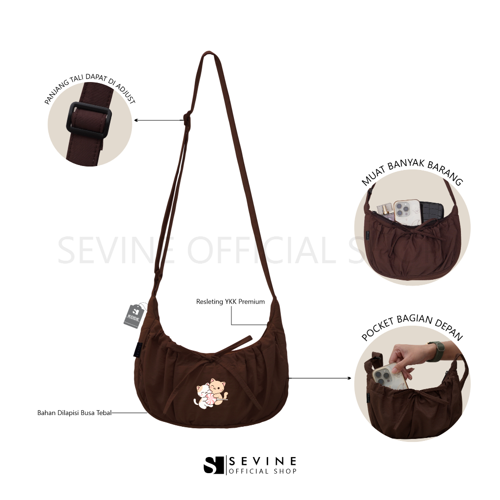 Sevine Kiora Sling Bag Bundling Bag Charm Rajut Gantungan Sekolah Tas Cewek Wanita Resleting Ganci