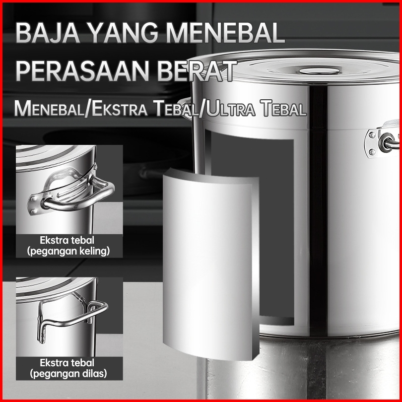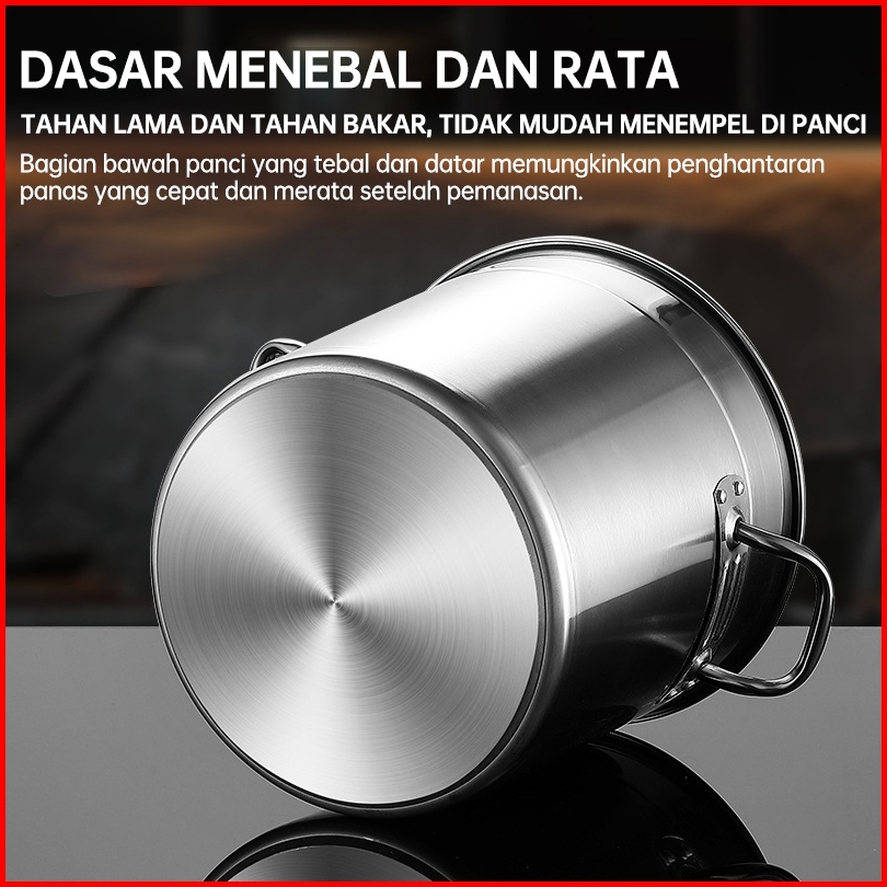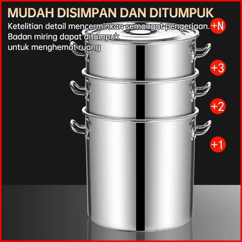 Panci Dandang Stainless Steel Tebal Panci Bakso Stockpot Panci Kukus Panci Besar 12l 21l 34l 50l