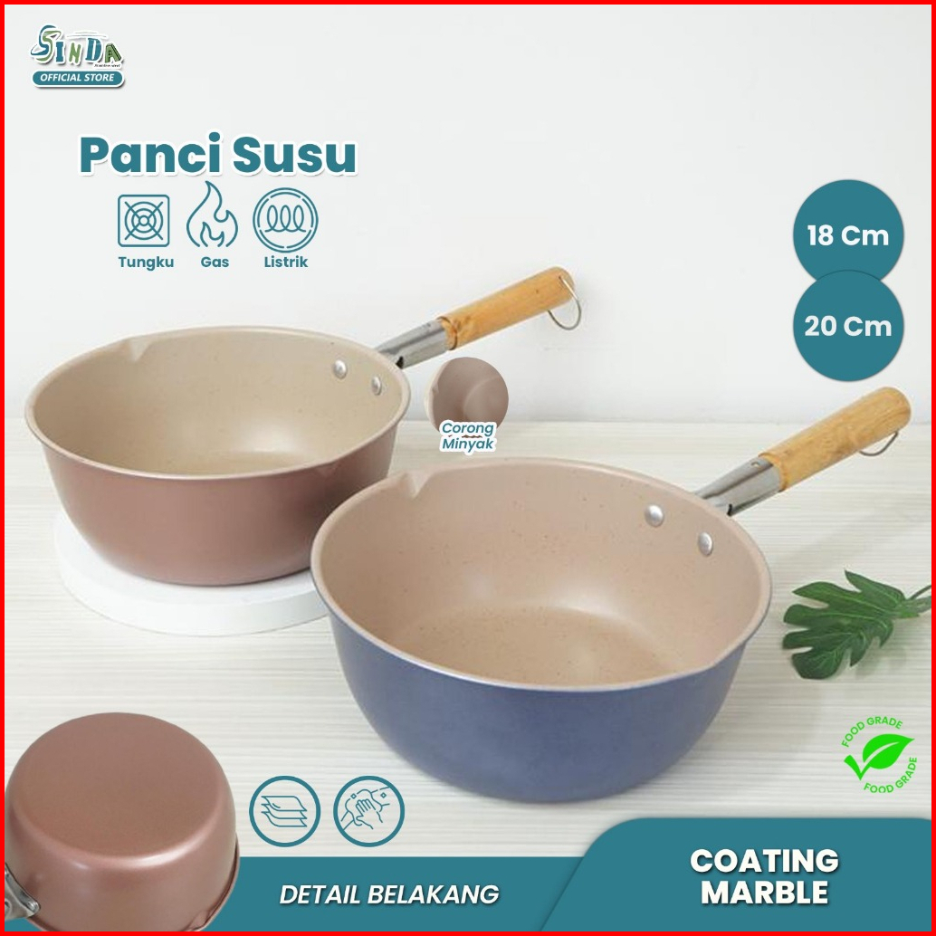 Sinda Panci Susu Anti Lengket Panci Marble Penggorengan Masak Mie 18cm 20cm Gagang Kayu