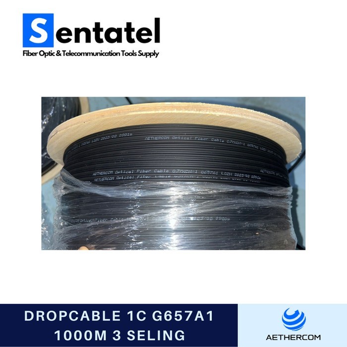 KABEL DROPCORE 1, 2, 4 core DROPWIRE DW 1 CORE 1 ROLL kabel fo 3 sling drop core DC 1C DROP CORE 1 CORE FTTH MERK AETHERCOM