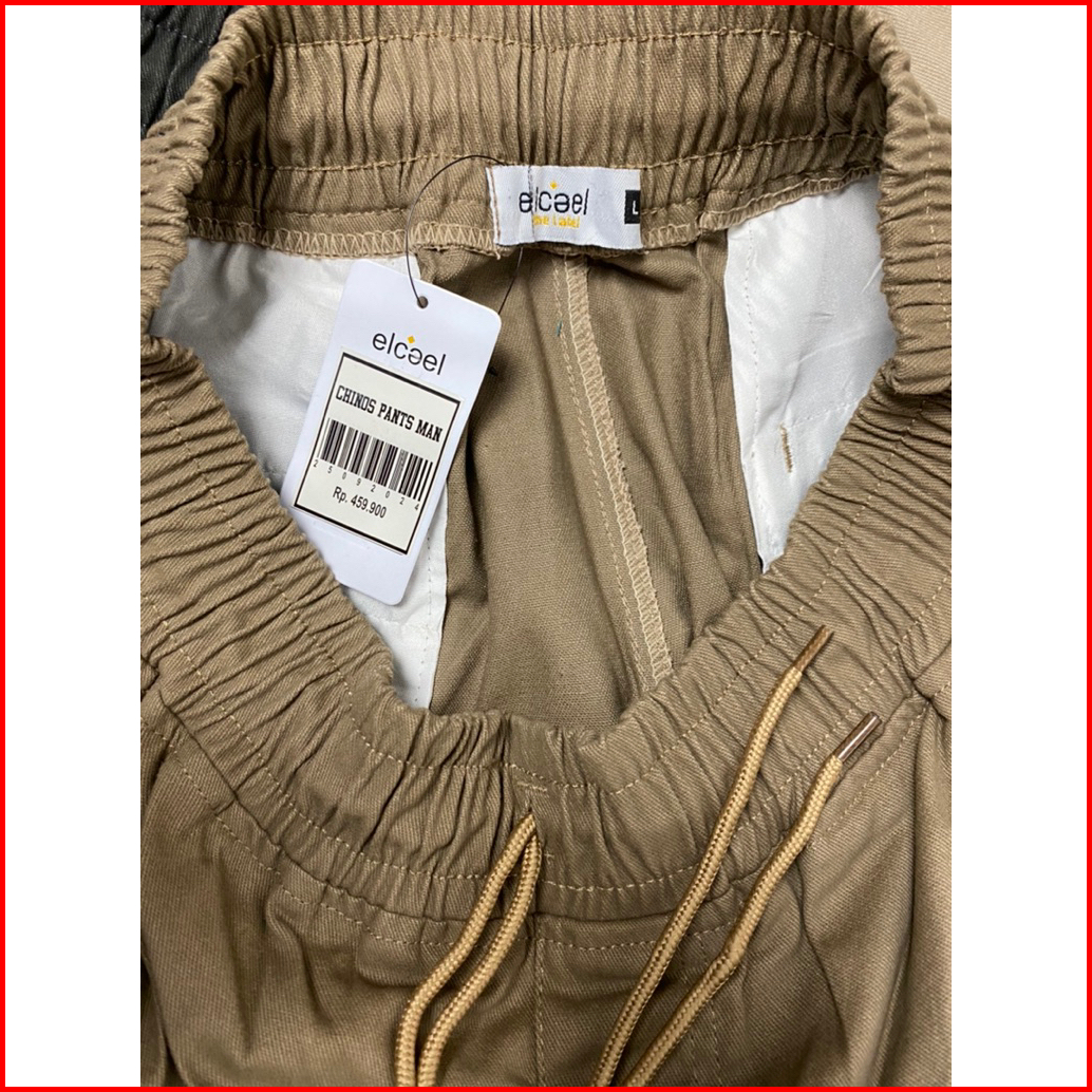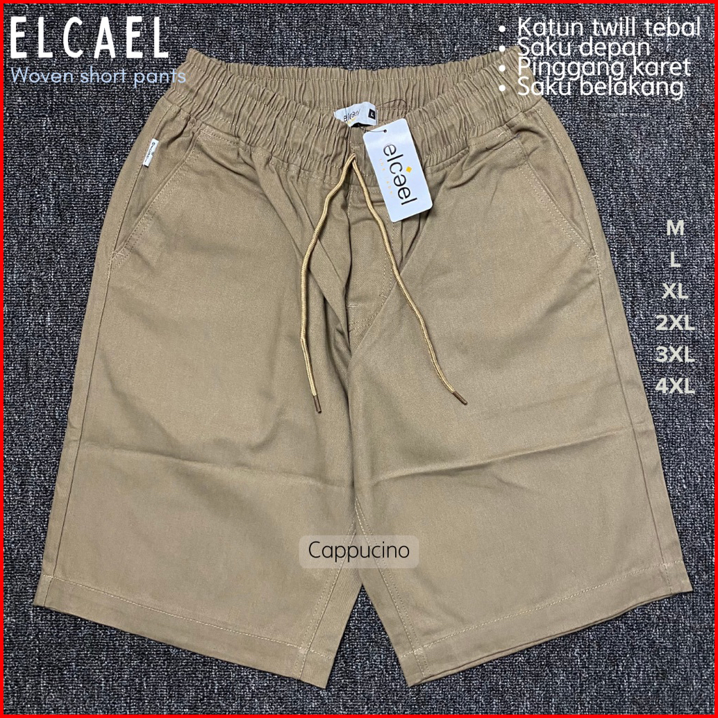 Celana Pendek Casual Pria Chinos Katun Woven Elcael Remaja Dewasa Big Size Saku Pinggang Karet Kolor Premium