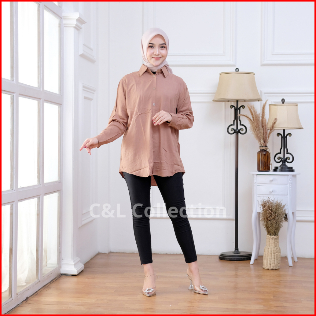 C L - Kemeja Kerja Wanita Polos Rayon Twill Premium